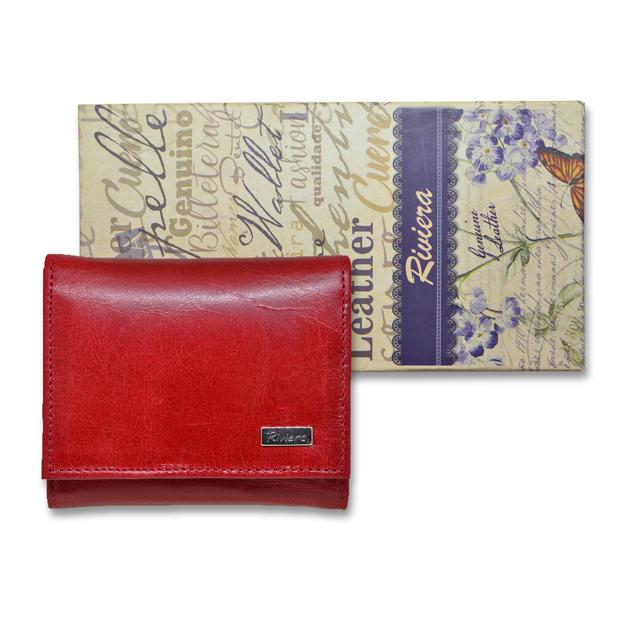 M959L-R Billetera cuero genuino,rojo sólido
